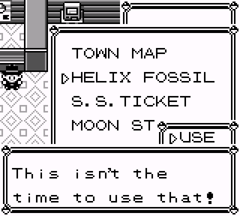 Exploring the ship was a fun experience, enhanced by the fact that once you’ve finished what is essentially a dungeon, it becomes totally inaccessible from then on1. There’s several TMs and other items here that become totally unobtainable once you’ve obtained HM01 Cut. There’s also some interesting characters, like “Le Waiter” (which may have inspired Restaurant Le Nah and Restaurant Le Yeah in Lumiose City), and the Global Police Agent, which almost certainly inspired the character of Looker.