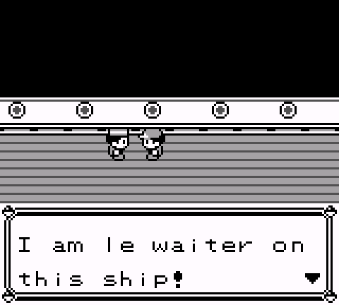 One thing I did notice about certain NPC sprites though, that almost certainly flew over the heads of any kids playing, is the designs of the S.S. Anne’s crew. I know these are 16x16 sprites, but why are these characters, who are explicitly not from the Kanto region, designed to look like a caricature of Chinese sailors? It definitely threw me for a loop at the time.